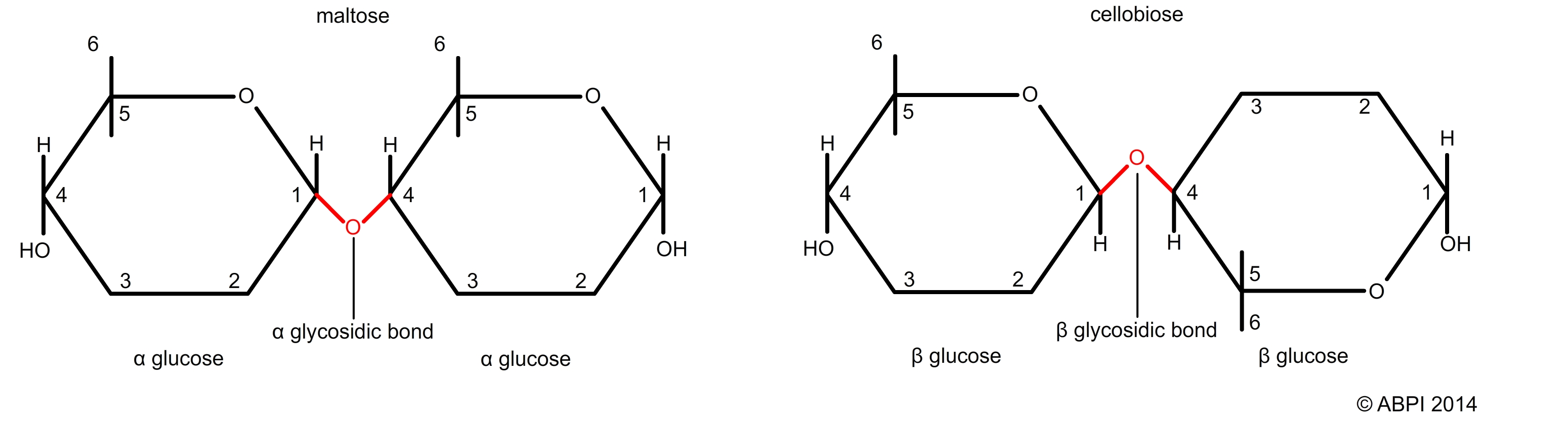 The arrangement of the atoms in monosaccharide molecules is complex due to the arrangement of the carbon bonds. As a result, several different isomers are common. This in turn affects the way bonds between the monosaccharide units are formed. Glycosidic bonds are named as a result of both the arrangement of the side groups (e.g. α and β) and by the numbers of the carbon atoms which are involved (e.g. 1,4 or 1,6). So, for example, you can have an α-1,4 glycosidic bond or a β-1,6 glycosidic bond.