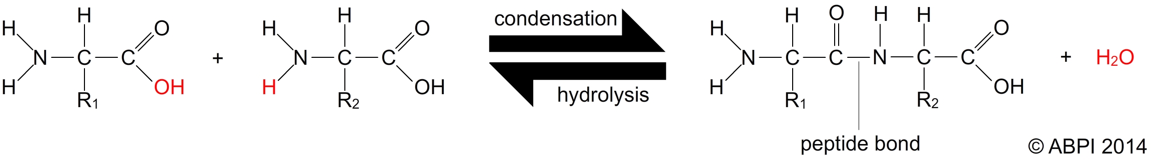Although the R group is important in the structure of proteins, it is ignored when considering how amino acids join together to form proteins.