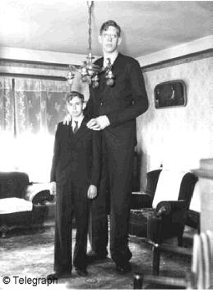 If too much growth hormone is produced in childhood, then giantism results. The most famous case of giantism is that of Robert Wadlow. He weighed a normal 8.5 pounds at birth but by 5 years of age he weighed 7.5 stones and was 5 ft 4 tall. As an adult he weighed 35 stones and was 8 ft 11 tall. He died aged 22 years.