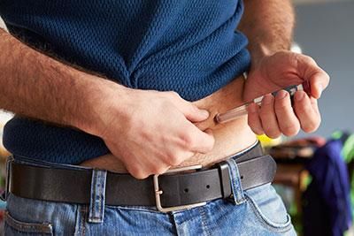 Finger prick blood tests to measure the blood glucose levels followed by insulin injections.