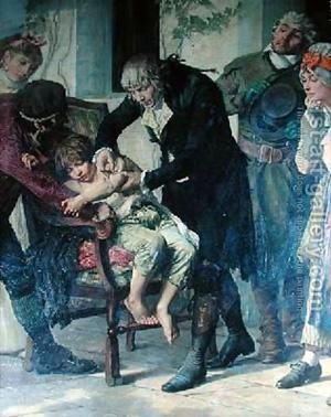 Finally in 1794 Jenner decided to try out his idea. He took pus from the cowpox spots of a milkmaid and scratched it into the skin of a healthy young boy called James Phipps, who then developed cowpox.